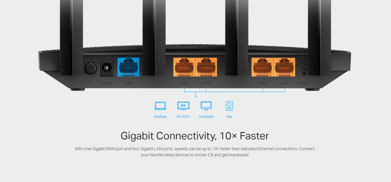 - Θύρες Gigabit Ethernet – Υψηλές ενσύρματες ταχύτητες για PC, Smart TV & κονσόλες