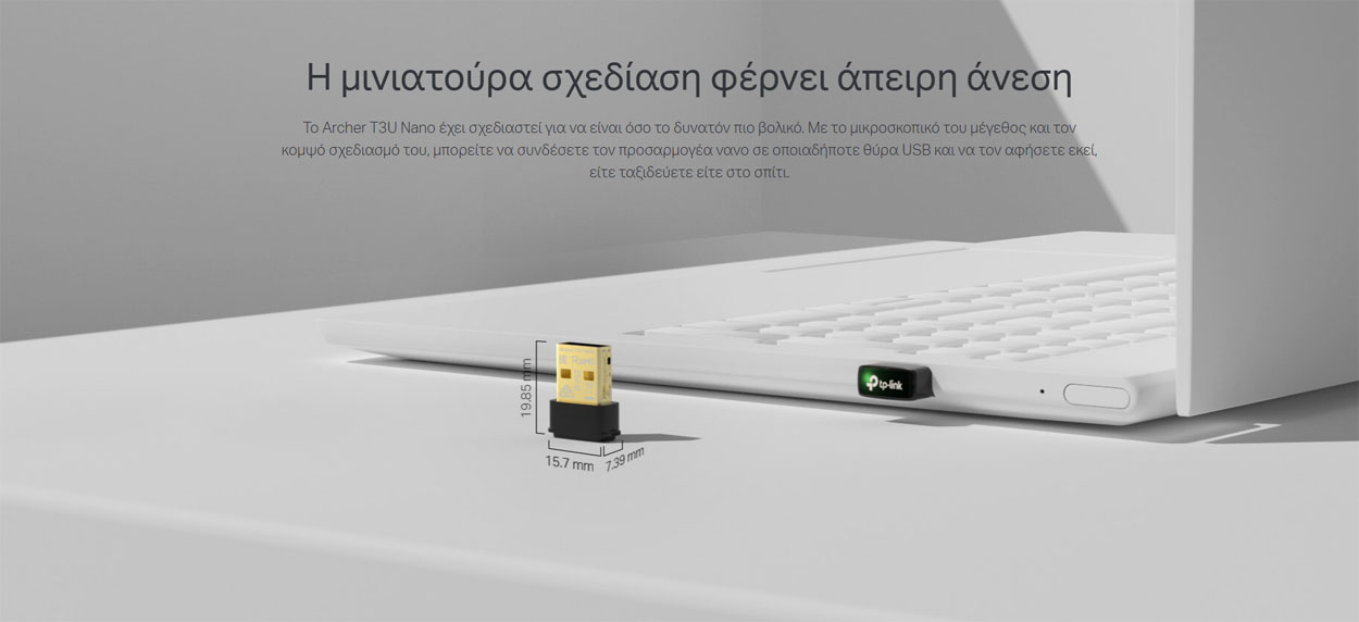 Το nano design τον καθιστά ιδανικό για μόνιμη χρήση σε laptop ή desktop, ενώ η υποστήριξη WPA3 encryption προσφέρει ενισχυμένη ασφάλεια δικτύου.
