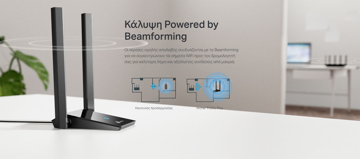 Βελτιωμένη εμβέλεια και σταθερότητα σήματος ακόμα και σε απομακρυσμένα σημεία. - Beamforming για στοχευμένο Wi-Fi
