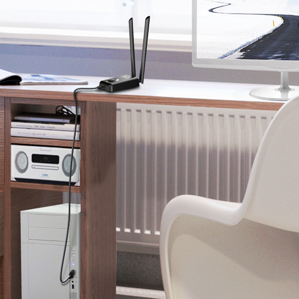Διαθέτει δύο αποσπώμενες κεραίες 5dBi, οι οποίες μπορούν να ρυθμιστούν ή να αντικατασταθούν για ακόμη καλύτερη κάλυψη, ενώ η desktop σχεδίαση και το USB extension cable 1.5m διευκολύνουν την τοποθέτηση για βέλτιστο σήμα.