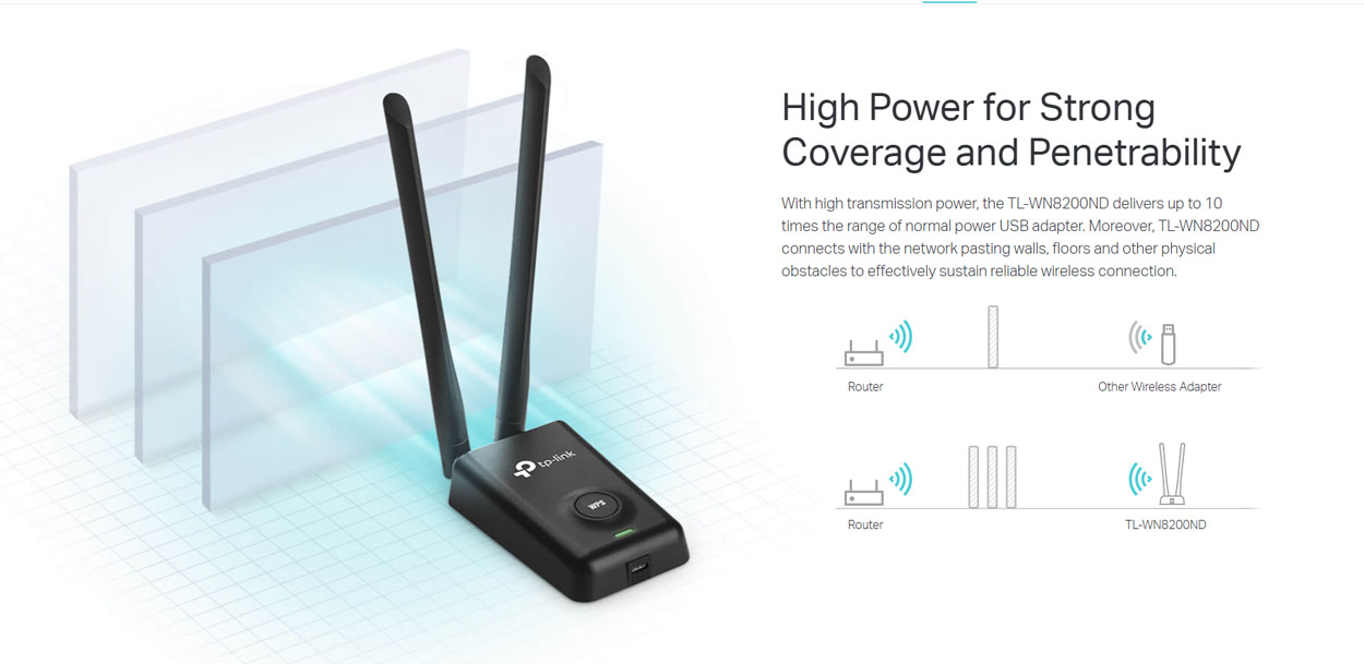 Η κύρια διαφοροποίησή του είναι η high power σχεδίαση, που προσφέρει έως και 10× μεγαλύτερη εμβέλεια σε σχέση με έναν τυπικό USB adapter, επιτρέποντας σύνδεση ακόμη και μέσα από τοίχους και εμπόδια.