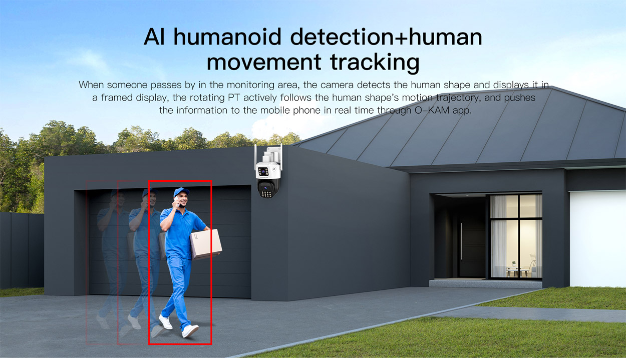 Όπως όλες οι κάμερες της Vstarcam, διαθέτει την γνωστή λειτουργία Ανίχνευσης Κίνησης (Motion Detection), με δυνατότητα αποστολής ενημερώσεων (Push-Notification) μέσω της εφαρμογής στο κινητό σας, όταν η κάμερα ανιχνεύσει κίνηση. Ωστόσο πλέον μπορείτε, αντί της απλής λειτουργίας Motion Detection, να επιλέξετε να ενεργοποιήσετε την λειτουργία Human Detection, η οποία χρησιμοποιεί εξελιγμένους αλγόριθμους τεχνητής νοημοσύνης AI, ώστε να διακρίνει και να ξεχωρίσει την ανθρώπινη κίνηση, ώστε να μην λαμβάνεται άσκοπες ψευδείς ειδοποιήσεις από κινήσεις που μπορεί να οφείλονται σε κινήσεις δέντρων, φυτών, εντόμων ή άλλων εξωγενών παραγόντων. Επιπλέον, μπορείτε να ενεργοποιήσετε και την λειτουργία Human Tracking, ώστε η κάμερα όταν εντοπίσει ανθρώπινη κίνηση (Humanoid Detection) να αρχίσει να ακολουθεί τον άνθρωπο-στόχο, χρησιμοποιώντας την οριζόντια και κάθετη περιστροφή της, ώστε ο άνθρωπος-στόχος να είναι πάντα μέσα στο κάδρο της εικόνας. Μόλις αυτός εξέλθει, θα επανέλθει αυτόματα στο αρχικό σημείο που βρισκόταν, πριν την ακολουθία του στόχου.