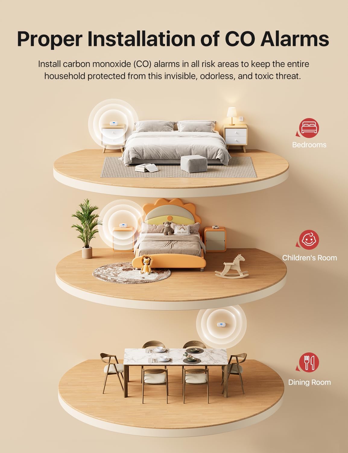 - Οπτική και Ηχητική Προειδοποίηση: Σε περίπτωση κινδύνου, η κόκκινη φωτεινή ένδειξη αναβοσβήνει και η σειρήνα 85dB ηχεί άμεσα, ικανή να ξυπνήσει ακόμη και κάποιον που κοιμάται βαθιά