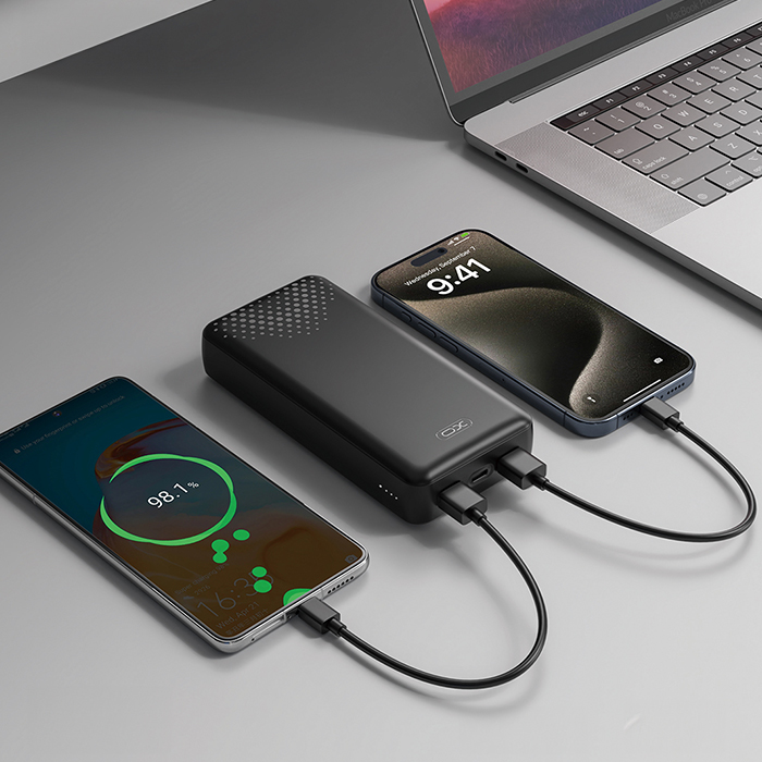 Εξοπλισμένο με 3 θύρες εξόδου (2x USB-A & 1x USB-C), σας επιτρέπει να φορτίζετε ταυτόχρονα έως και τρεις συσκευές, όπως smartphones, tablets ή άλλα gadgets. Η μεγάλη χωρητικότητα των 20.000mAh προσφέρει πολλαπλές φορτίσεις, εξασφαλίζοντας ότι δεν θα ξεμείνετε ποτέ από μπαταρία.