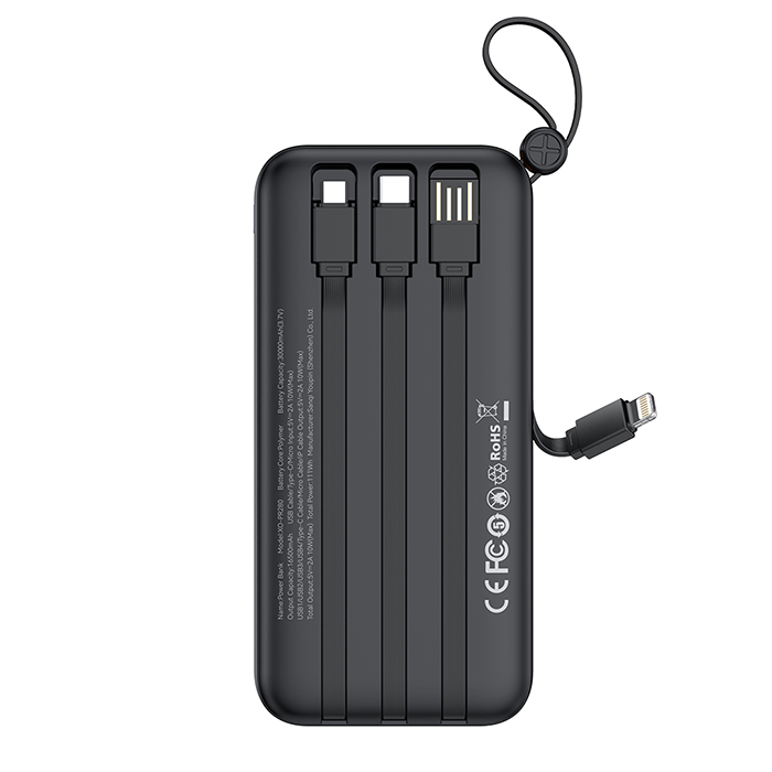 Με δυνατότητα έως και 7 πλήρεις φορτίσεις smartphone, δεν θα χρειαστεί να ανησυχείτε για την μπαταρία των συσκευών σας. Τα 4 ενσωματωμένα καλώδια (USB-A, USB Type-C, Micro USB, Lightning) προσφέρουν μέγιστη ευκολία, επιτρέποντάς σας να φορτίζετε διαφορετικές συσκευές χωρίς επιπλέον εξοπλισμό.